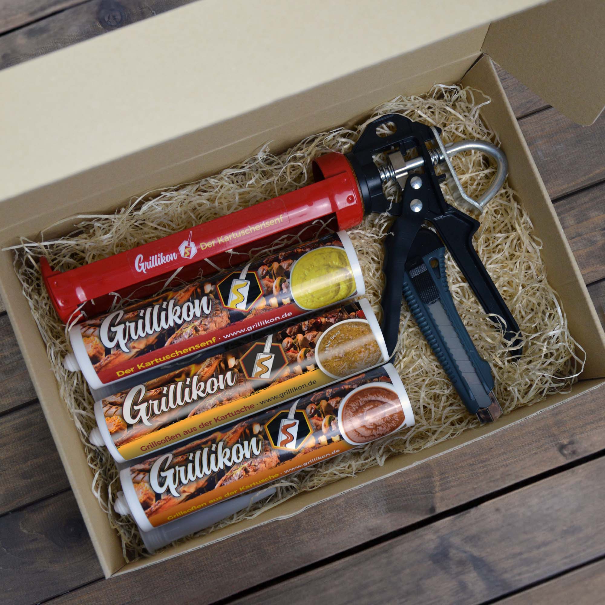 Unsere Grillikon Senf und Grillsoßen Kartuschen sind sowohl einzeln, als auch als einzigartige Sets mit Kartuschenpresse und zusätzlichen T-Shirt oder Grillschürze erhältlich.